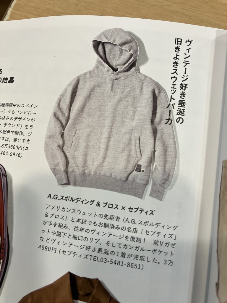2nd 12月号 〜黒のトラッド〜にて、当店別注のA.G.SPALDING スウェットパーカーをご紹介いただきました!