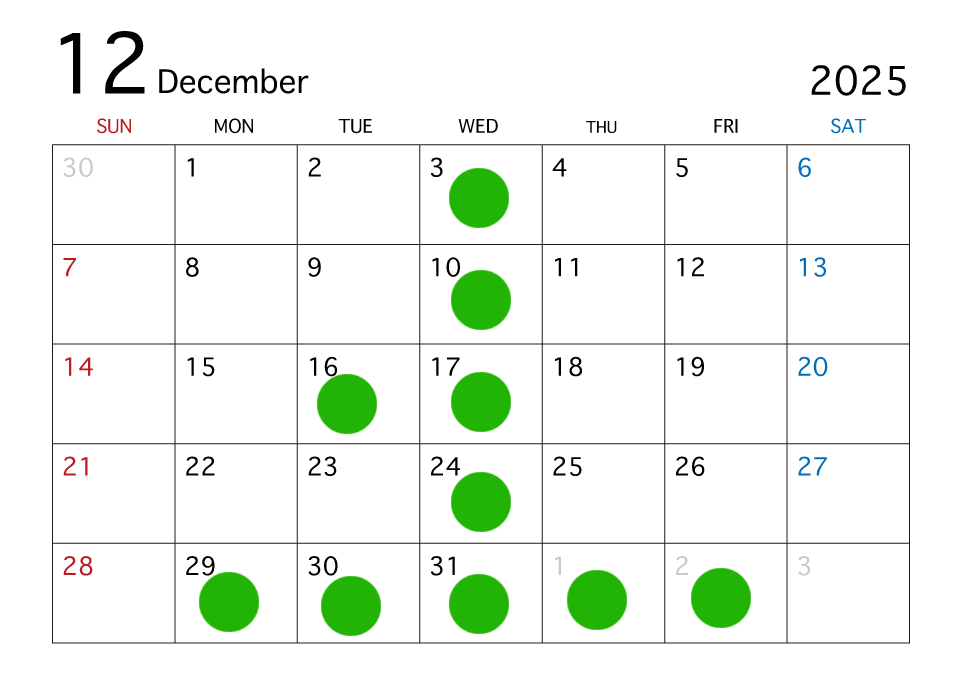 通常通り、毎週水曜日と第三火曜日にお休みをいただきます。