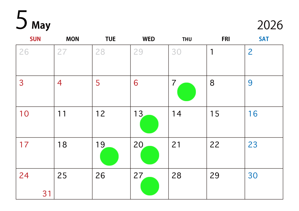 5月の営業スケジュールです。