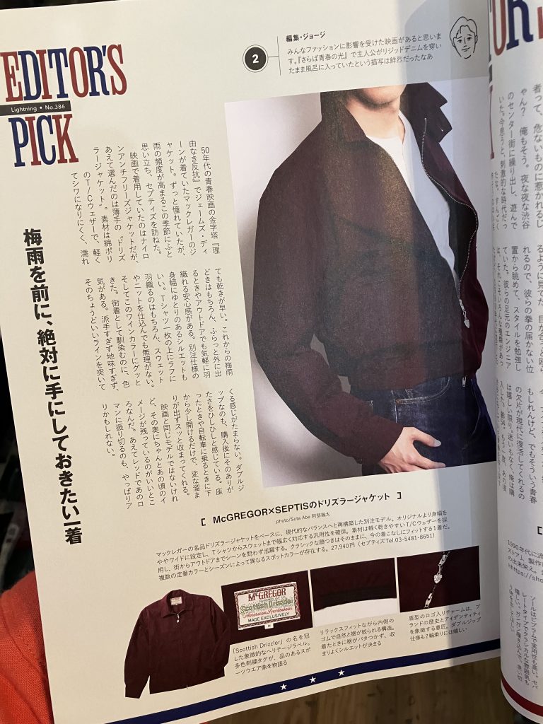 Lightning 6月号 〜心が躍る”いいTシャツ”〜にて、当店別注のMcGregor「DRIZZLER JACKET」をご紹介いただきました!