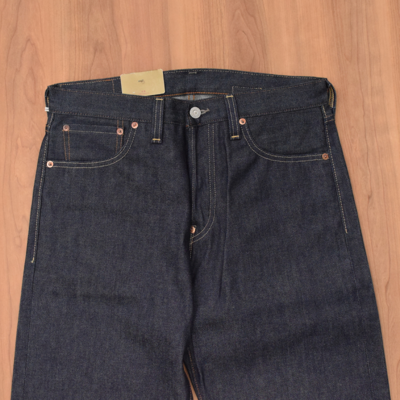 ※リジッド(未洗い)な為、水洗い後に2インチ前後の縮みが出る恐れがございます。ご了承下さいませ。サイズ W33 W34 W36 ウエスト 83cm 86cm 92cm< 前股上 31cm 32cm 34cm 後股上 41cm 42cm 43cm レングス 86cm 86cm 86cm モモ幅 31cm 32cm 34cm 裾幅 23cm 24cm 24cm