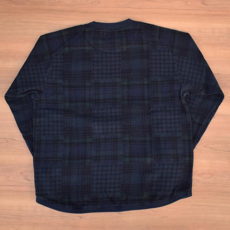 パッチワーク風デザインのフランネルを長袖Tシャツに仕上げた遊び心満載の1着!