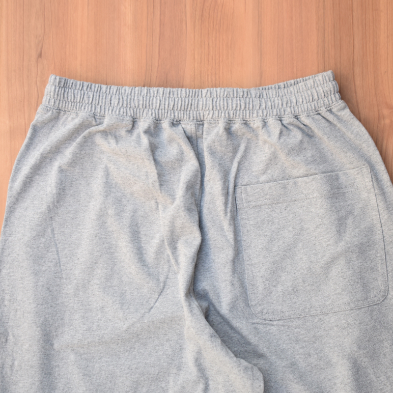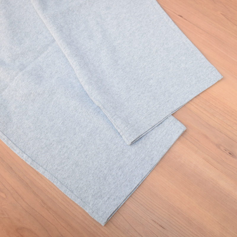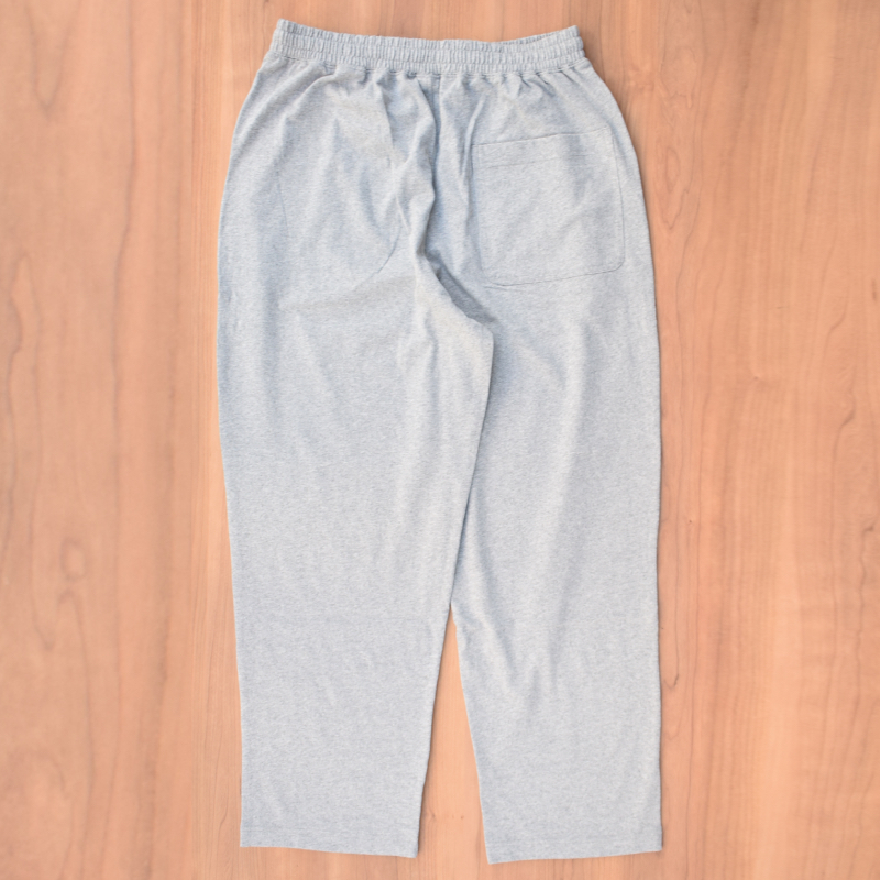 コットン100%の天竺素材を使用。スウェットパンツのようなルックスながら、裏毛でも裏起毛でもなく、フラットな裏地になっており、テロッとした軽やかな生地感が特徴的です。