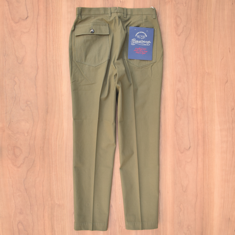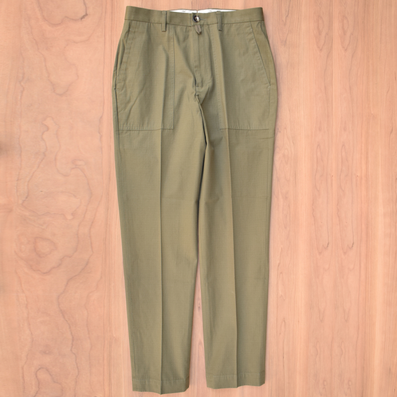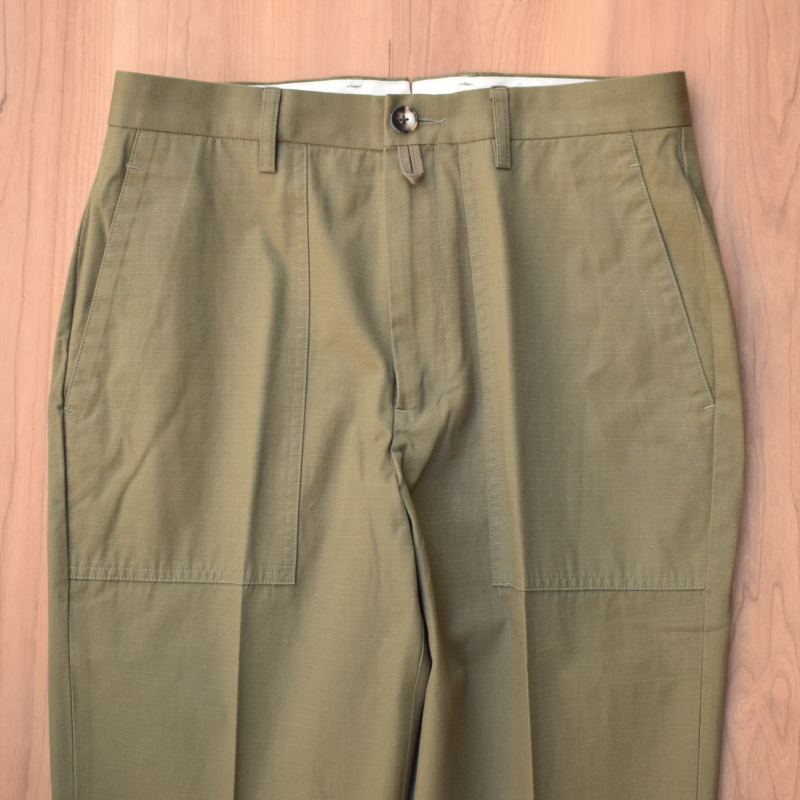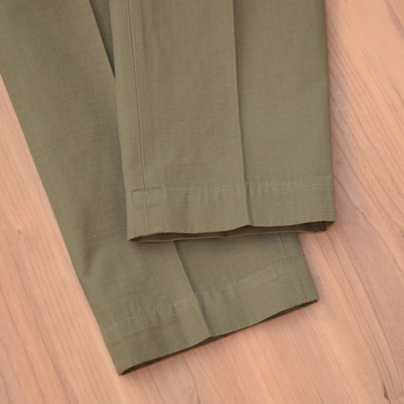 ベイカーポケットにリップストップ生地でミリタリーのムードを程よく残しつつも、裾口にかけてテーパードをかけた収まりの良いシルエット。