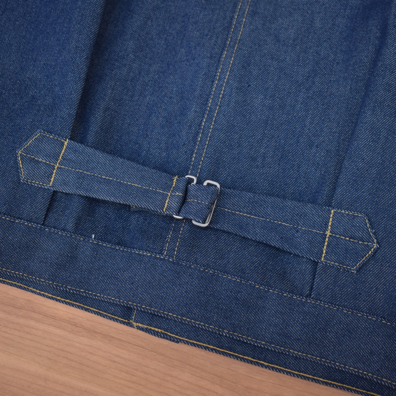 フロントはフラップ無しの片ポケット、そして月桂樹のドーナツボタンを使用した、いわゆる大戦モデル仕様。