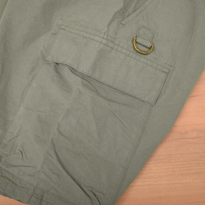 カーゴポケットにDリングなどのギミックを効かせつつ、素材にはウォッシュ加工を施した、コットン100%のハリ感あるポプリン。