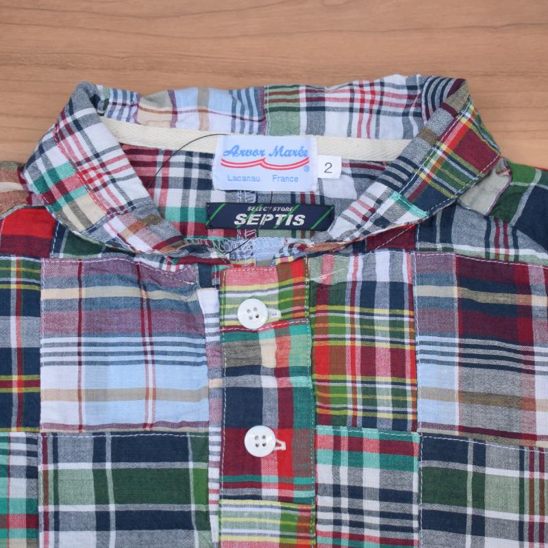 ARVOR MAREE(アルボーマレー) SEPTIS別注 "FUHAKU POLO" SAILOR P/O SHIRTS(セーラーカラー 半袖 プルオーバー シャツ) MADRAS PATCHWORK(マドラスパッチワーク)
