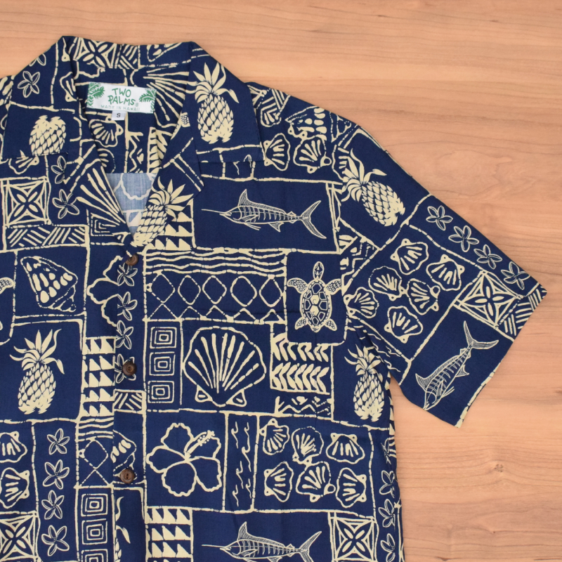 TWO PALMS(ツー パームス) 【MADE IN HAWAI】RAYON ALOHA SHIRTS(ハワイ製 レーヨン アロハシャツ) "MARINE" NAVY