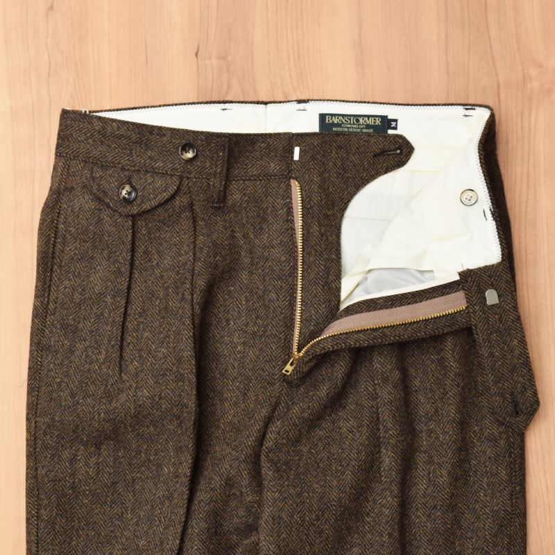 BARNSTORMER(バーンストーマー) 1260P HERRINGBONE TWEED McARTHUR2 2TUCK TROUSER(ヘリンボーンツイード マッカーサー2 2タック トラウザー) WOOL(ウール) BROWN(028)