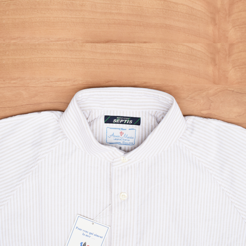 ARVOR MAREE(アルボーマレー) L/S F/O SAILOR COLLAR STRIPE SHIRTS(長袖 セーラーカラー フルオープンストライプシャツ) OXFORD(オックスフォード) BEIGE