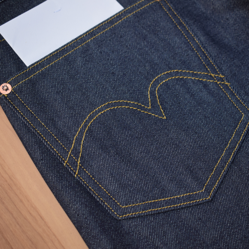 ヒップポケットはクロスしないアーキュエイトステッチに、むき出しリベット。