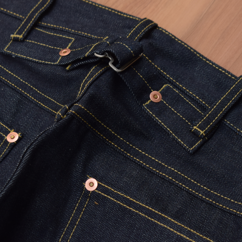 ※リジッド(未洗い)な為、水洗い後に1インチ前後の縮みが出る恐れがございます。ご了承下さいませ。