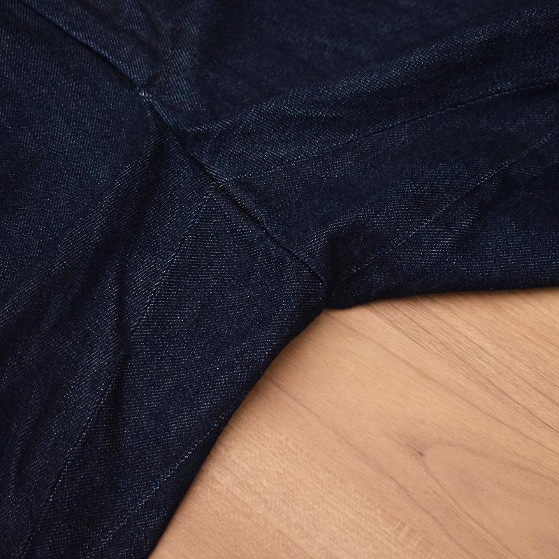 裾は未処理の状態で長めに設定し、タタキ幅等をお好みで選択していただけます。年間を通して穿けるデニムは是非持っておきたい一本です。サイズ S M L XL 2XL ウエスト 76cm 80cm 84cm 88cm 92cm 前股上 29cm 30cm 31cm 31cm 32cm 後股上 35cm 36cm 37cm 38cm 38cm レングス 95cm 95cm 95cm 95cm 95cm モモ幅 32cm 33cm 34cm 35cm 35cm 裾幅 22.5cm 23cm 23.5cm 24cm 24.5cm