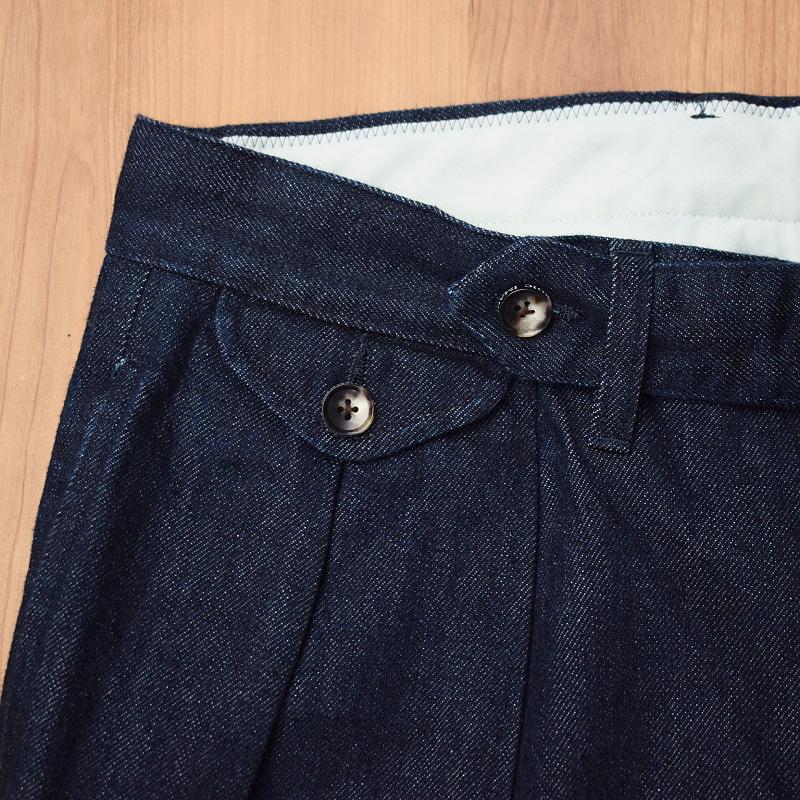 ベースにしているのは皆様お馴染みのチノパンですが、こちらは素材違いのデニム素材を使用(ワンウォッシュ仕上げ)。
