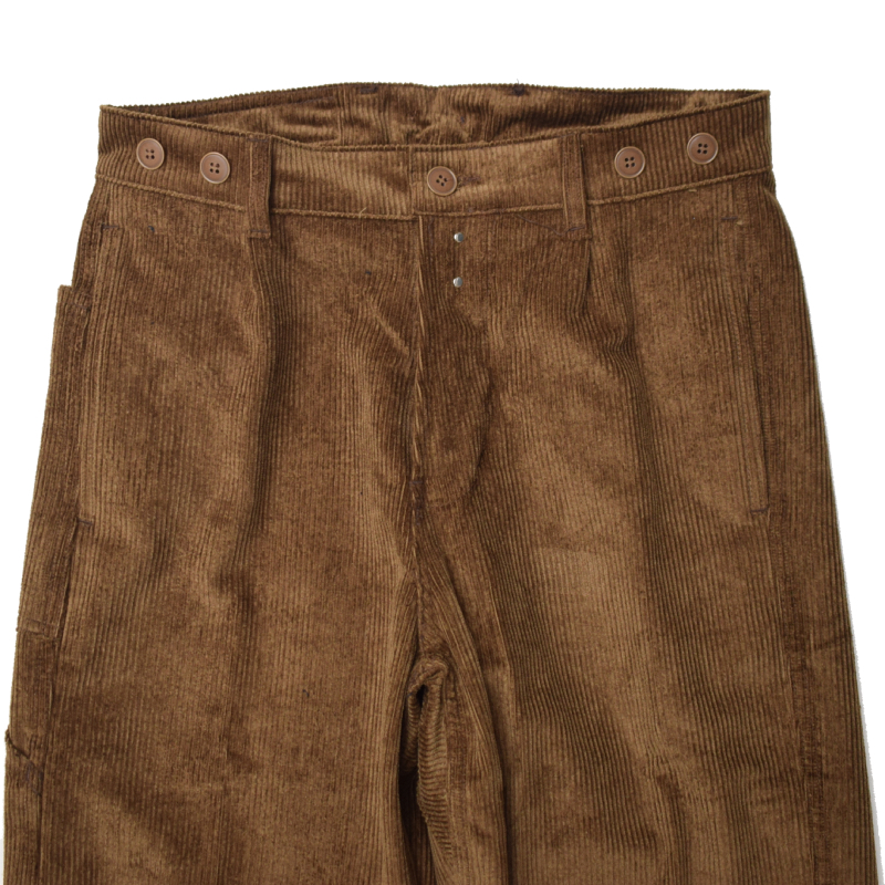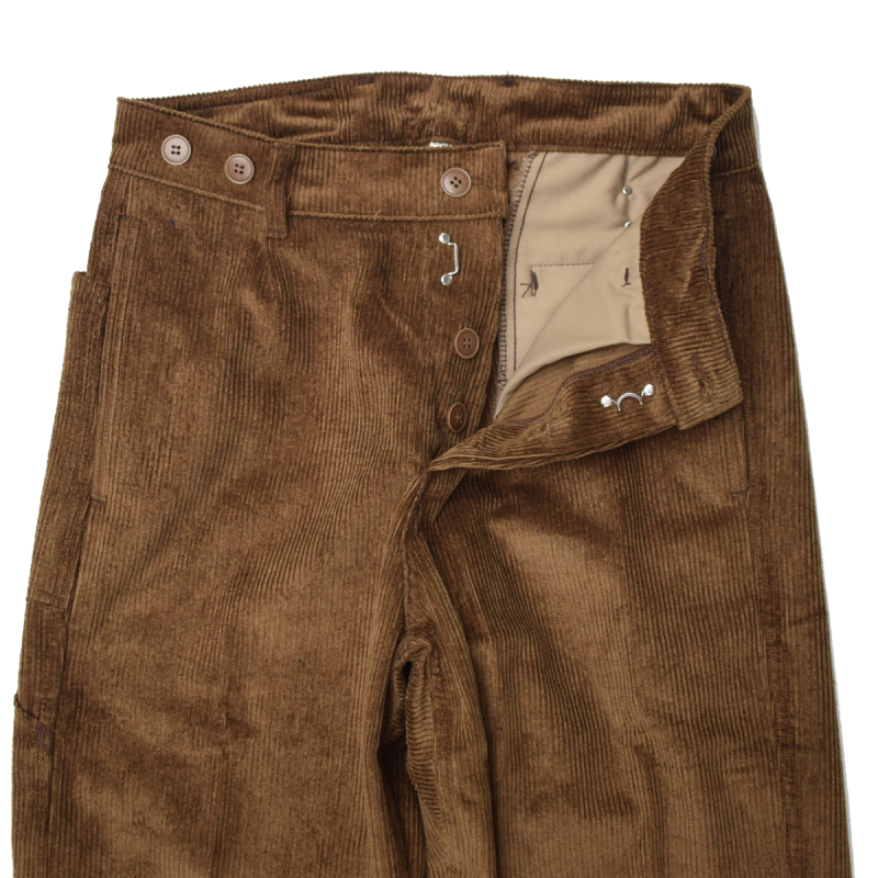 アシンメトリーなワークポケットにシンチバック、サスペンダーボタンといった、デザインとしても目を惹くクラシックなワークエッセンスを感じるディテールが、ズドンと太めなストレートシルエットの中に落とし込まれ、非常に存在感のある1本に仕上がっています。