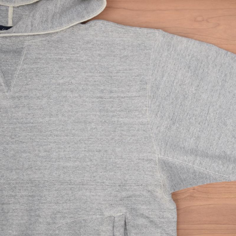 今となってはデザイン面からも好評なそのディテールを、裾口と脇下、そして首元には前Vガセット(はめ込み)を盛り込んだ、アメカジ好き垂涎の仕様!