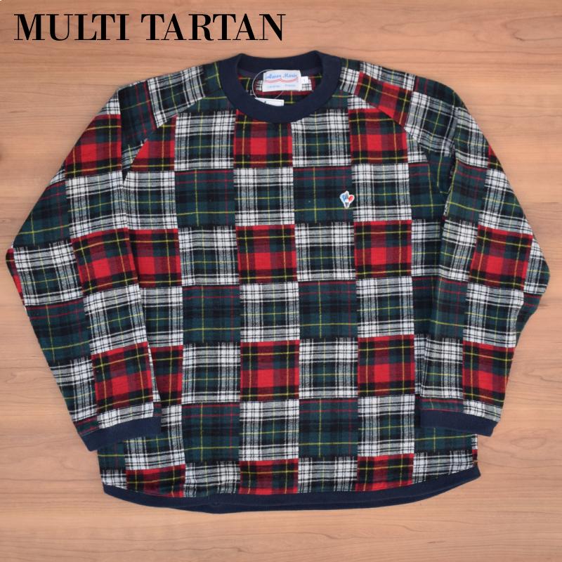 パッチワーク風デザインのフランネルを長袖Tシャツに仕上げた遊び心満載の1着!